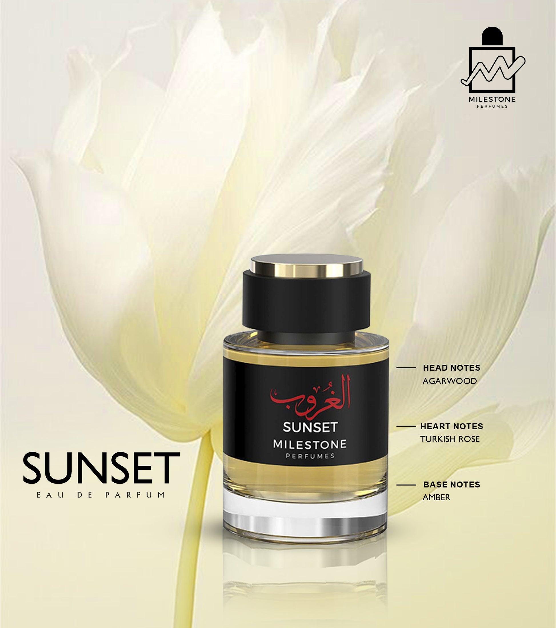 Golden Sunset – An enchanting blend of alluring oud, delicate roses, and captivating amber warmth.